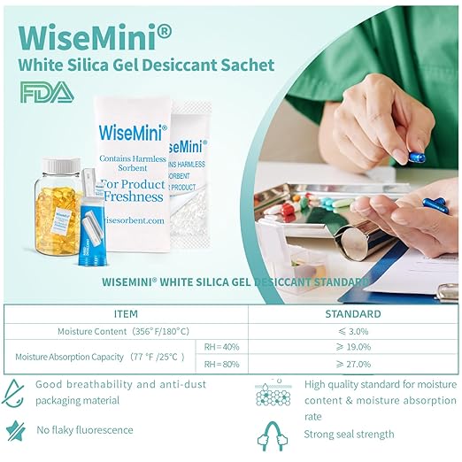 - 【Food Safe】: Silica Gel Desiccant Sachet is a small desiccant packet developed especially for industry. Food Grade approved water based ink, printing does not run off. It is completely safe to be in physical contact with any medicine, food, diagnostics reagent and health care products.