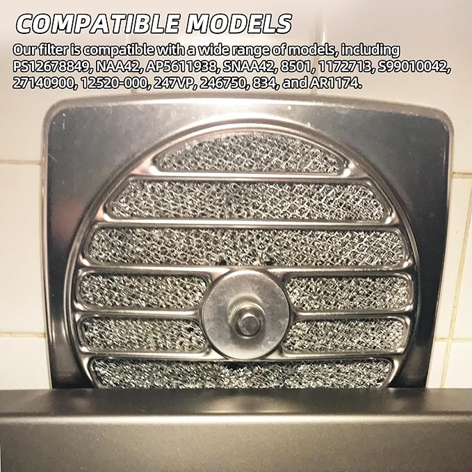 - Compatible Models: Our range hood filter replacement is compatible with a wide range of models, including PS12678849, NAA42, AP5611938, SNAA42, 8501, 1172713, S99010042, 27140900, 12520-000, 247VP, 246750, 834, and AR1174
