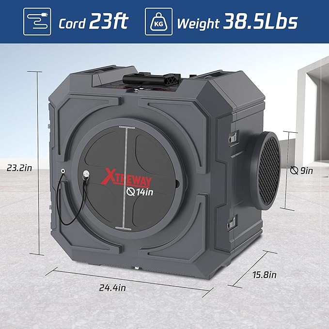- 【Industrial-Grade Durability】This industrial air purifier features an ultra-rugged exterior, suitable for construction sites, sewage restoration, water damage restoration and fire damage repair. It also comes with a user-friendly control panel, knob-style airflow adjustment, timer reset function, and hepa filter replacement reminders.