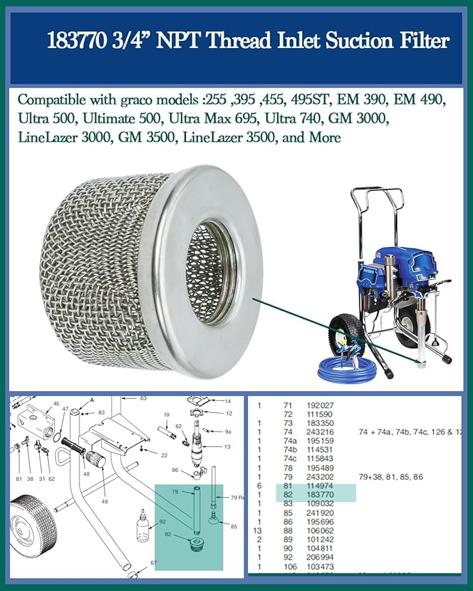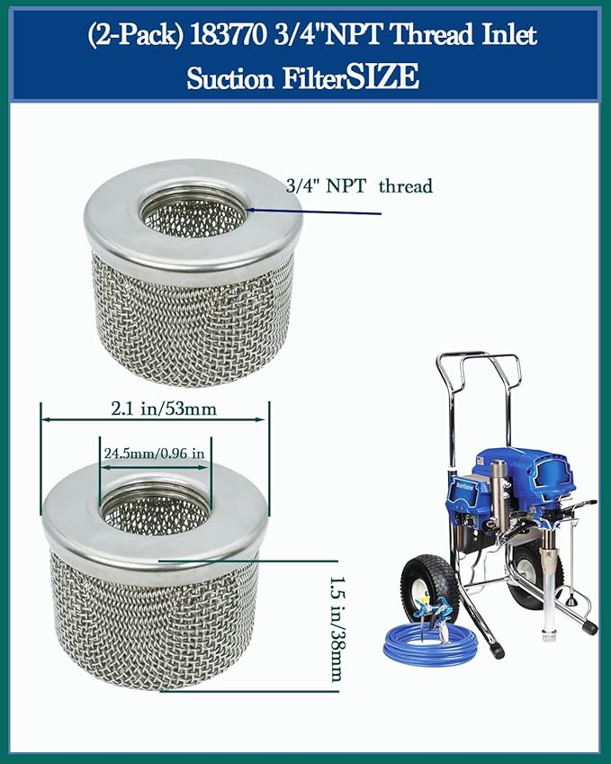 (2-Pack) 183770 3/4” NPT Thread Inlet Suction Filter Compatible with Graco 395,455, 495ST, EM 390, 490, Ultra 500,740, Ultimate 500, Ultra Max 695, GM 3000, 3500,LineLazer 3000, 3500, Paint Sprayers